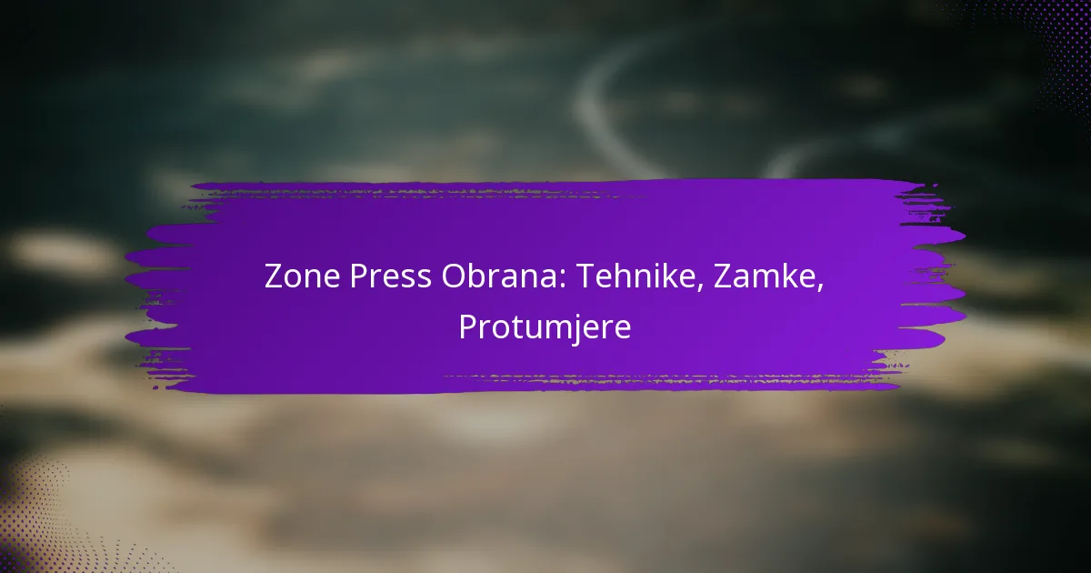 Zone Press Defense koristi specifične tehnike za ometanje napadačkog protoka protivničkog tima primjenom pritiska i prisiljavanjem na gubitke lopte. Ključni elementi uključuju strateško pozicioniranje igrača, učinkovite obrasce kretanja i jasnu komunikaciju među članovima tima.